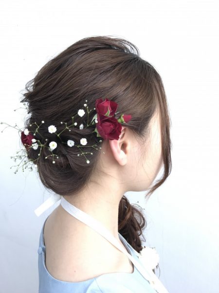 生花を飾りにしてパーティーダウンアレンジ